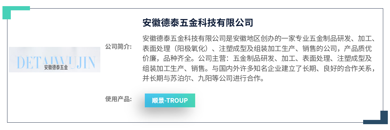 在德泰五金对多家ERP厂商反复调研,查看ERP产品等一系列的了解和咨询后,最终于2018年4月选择携手在制造业领域拥有20余年丰富经验的顺景软件作为信息化合作伙伴,并选定顺景开云体育-开云(中国)一站式服务官方网站 作为此次管理变革的重要工具。